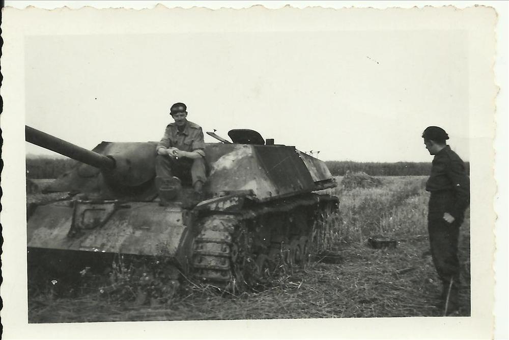 twee britse soldaten bij tank in grasveld, Duitsland,