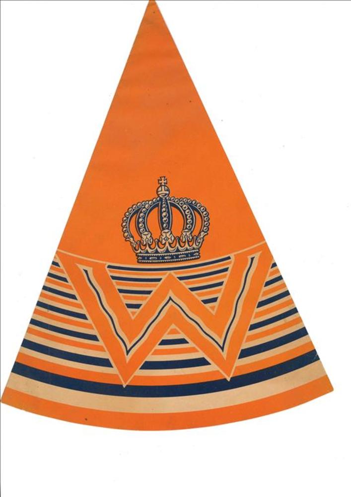 Feestmuts, gemaakt van karton met daarop de letter W...