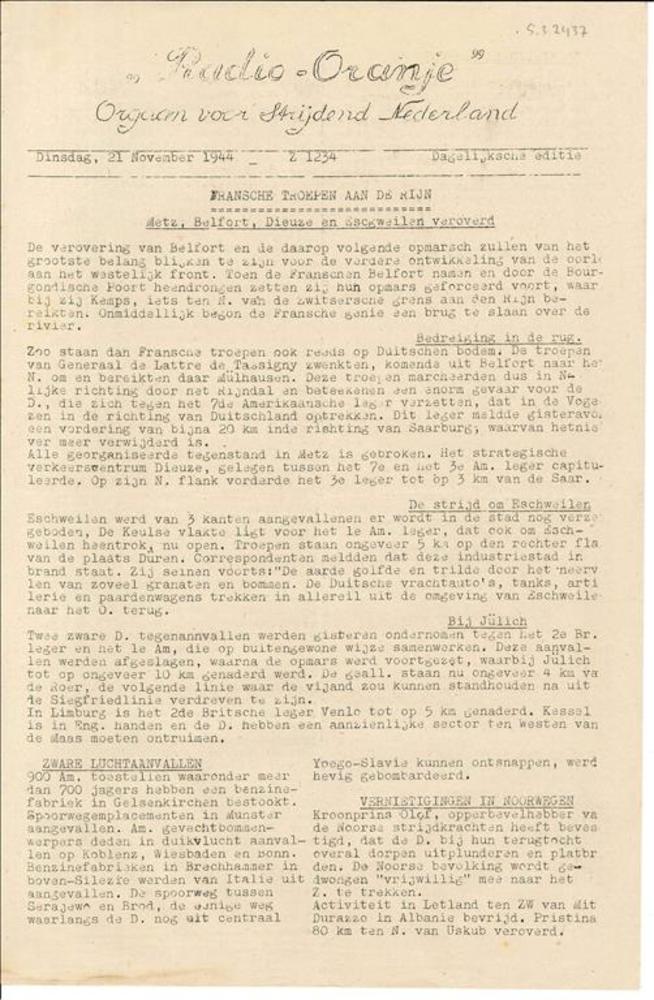 Radio Oranje, Orgaan voor strijdend Nederland, Dinsd...