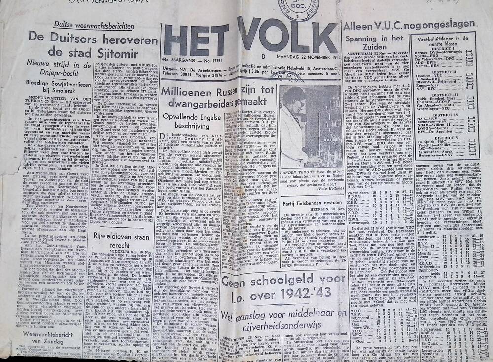Het Volk, 22 november 1943