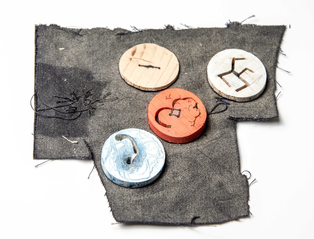 16 houten wasknijpers verbonden door metalen pin, 20...