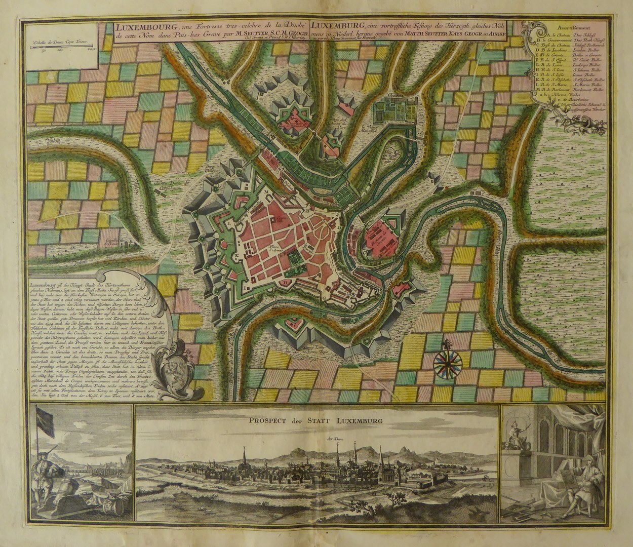 Kaart van de stad Luxemburg "... vortreffliche Festu...