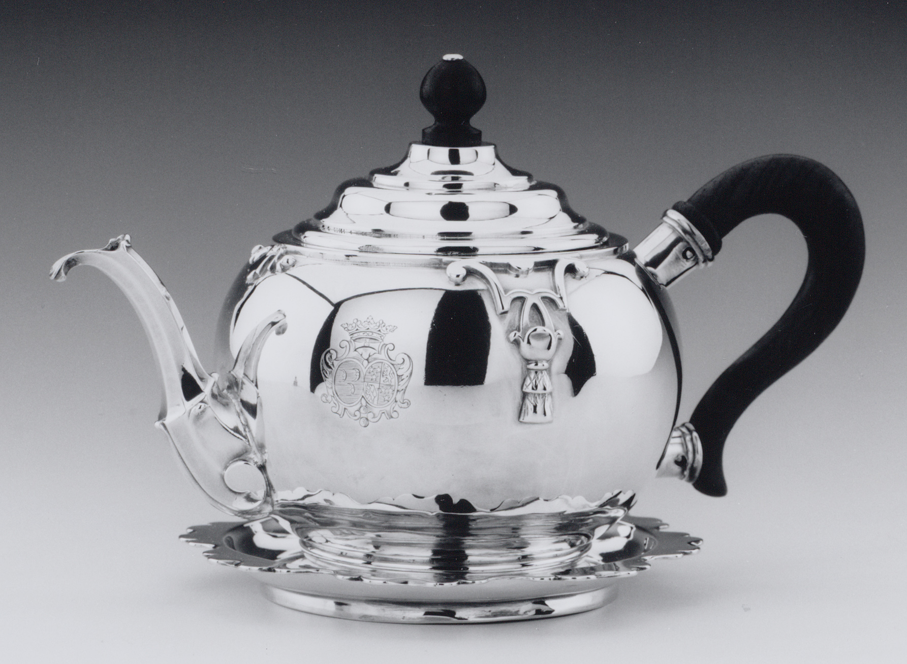 Theepot op pattipan met familiewapen Van Naerssen-va...