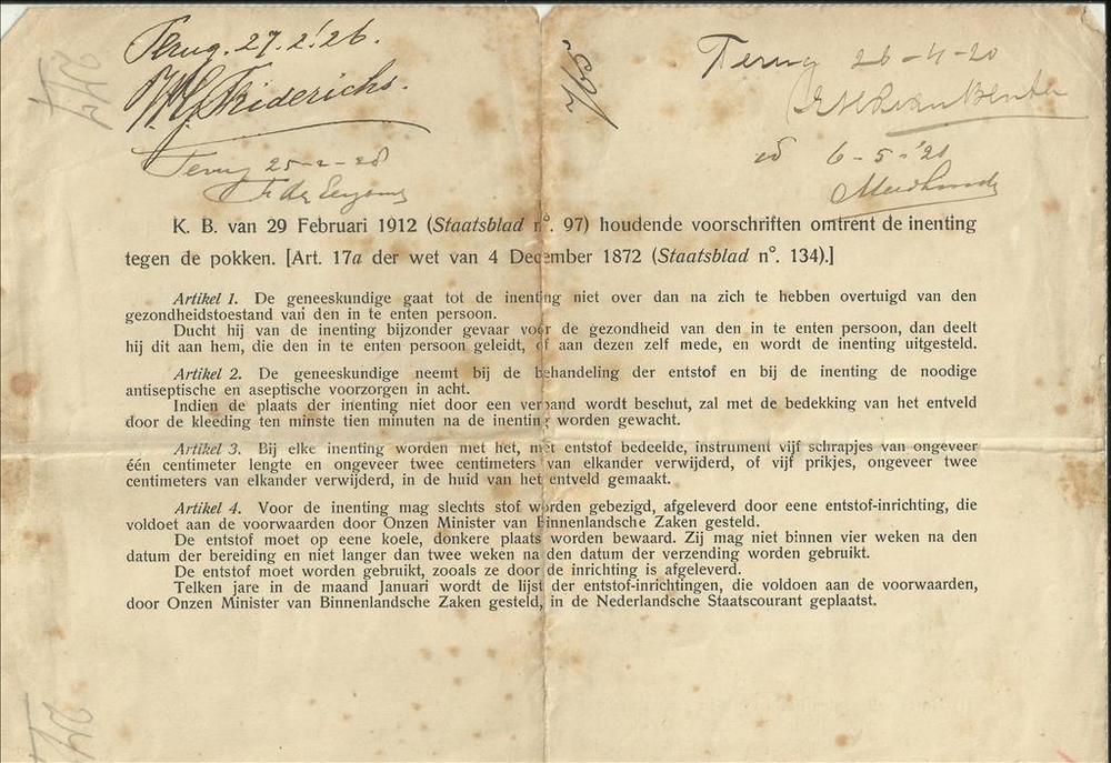 Formulier betreffende de inenting tegen de pokken, M...