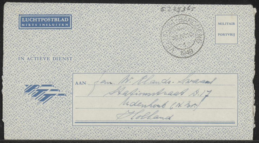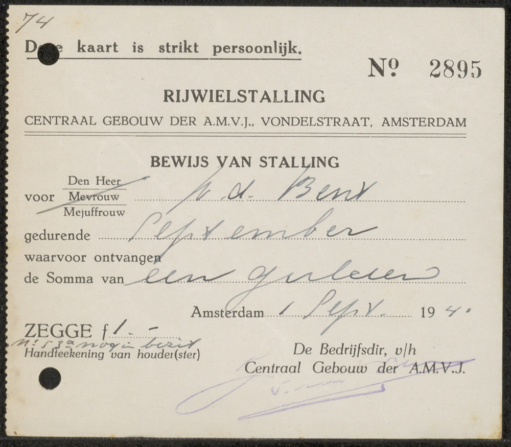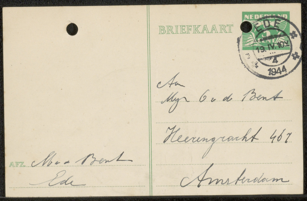 Briefkaart aan Mej C v.d. Bent Amsterdam