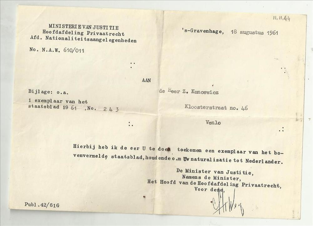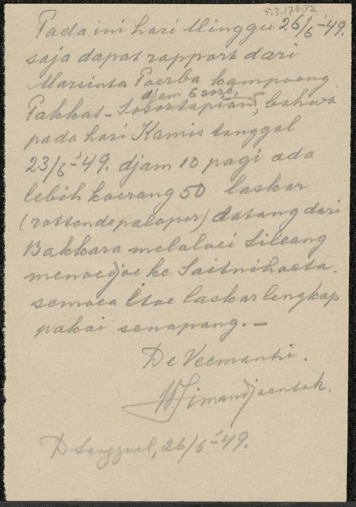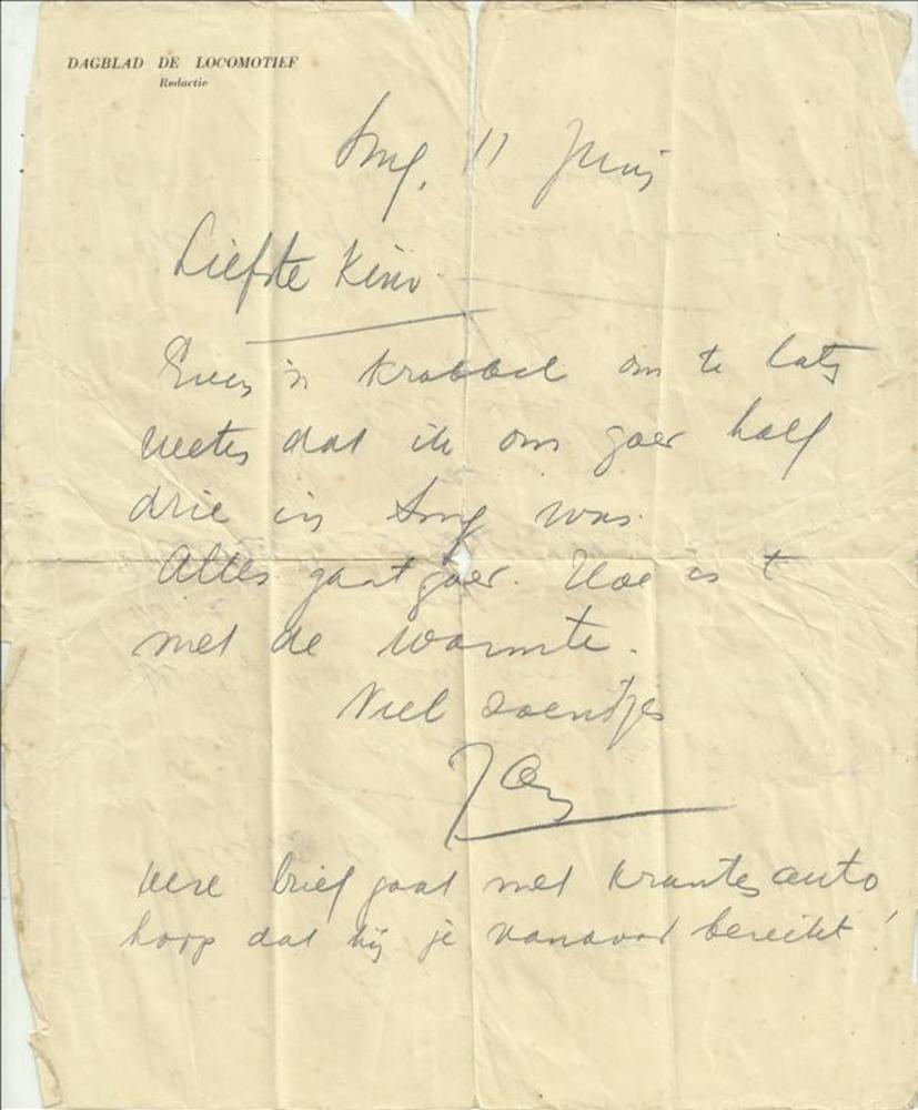 Handgeschreven briefje van J.manJacortak (??) in het...