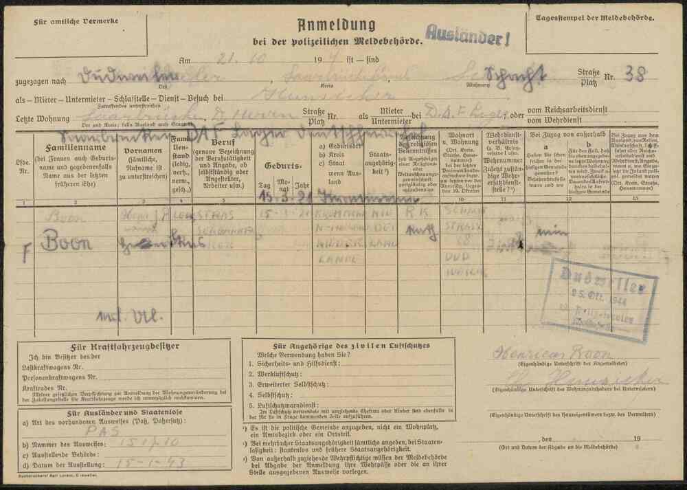 Auszug aus der Reichsmeldeordnung vom 6. Januar 1938