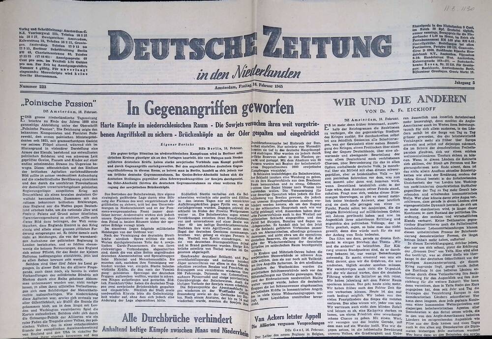 Deutsche Zeitung in den Niederlanden. 16 februari 1945.