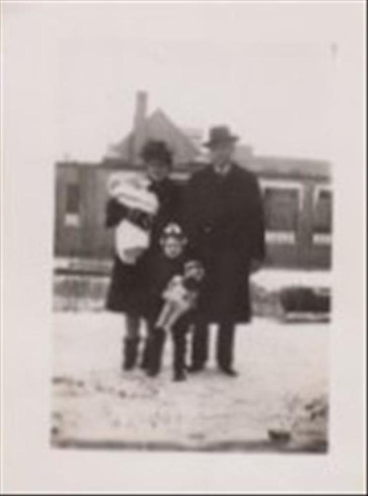 Foto van een man, vrouw en twee kinderen staande in ...