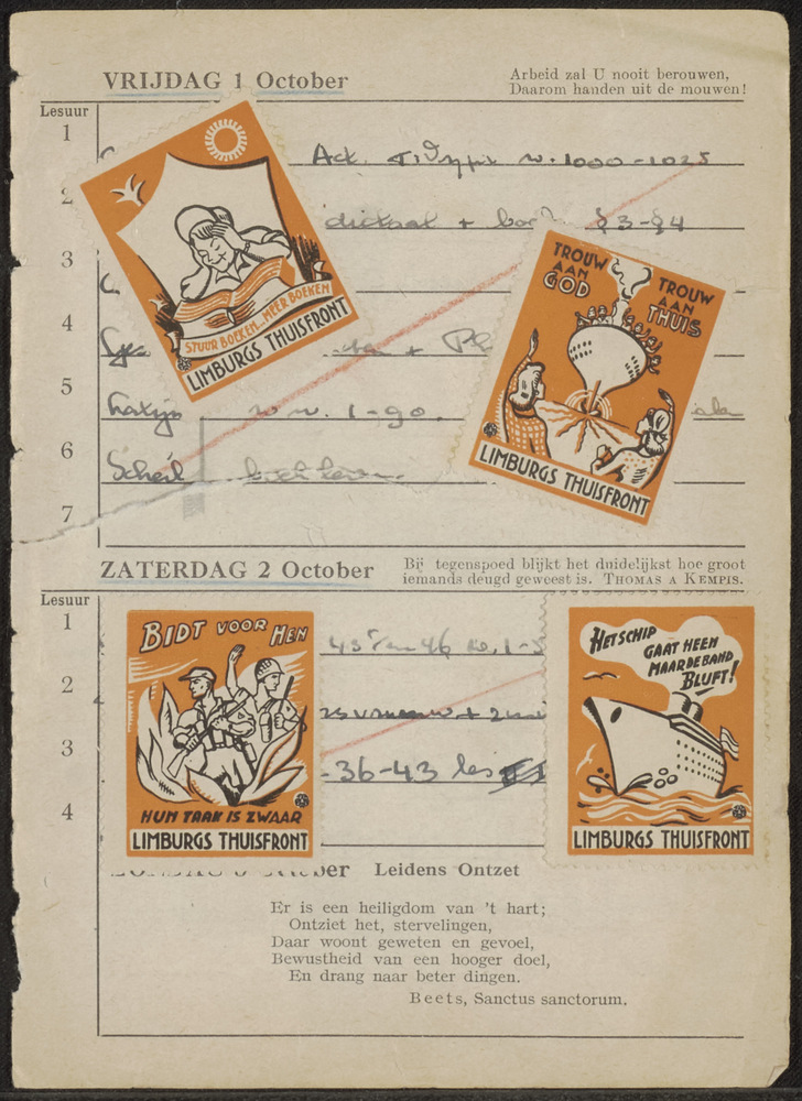 Bladzijde uit schoolagenda met sluitzegels