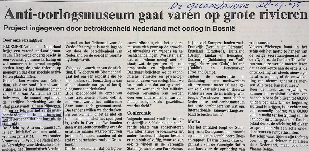 Anti-oorlogsmuseum gaat varen op grote rivieren