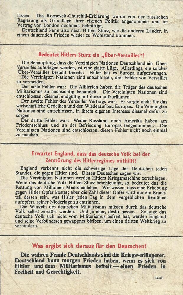 Pamflet: "Nach Hitlers Sturz (G.39) 1942.