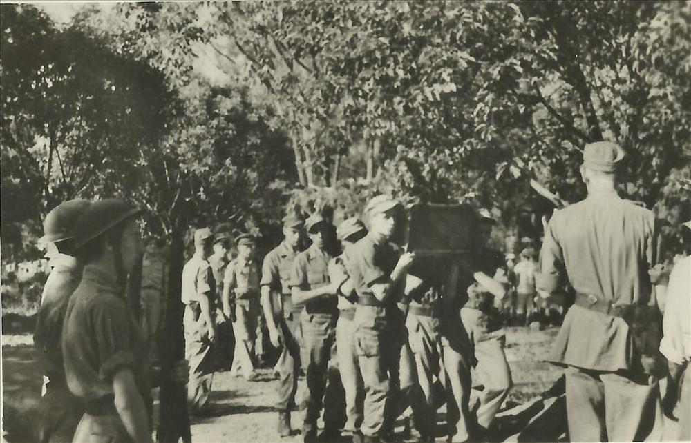 Indië na WO 2: militair, begrafenis, kist, dragers, ...