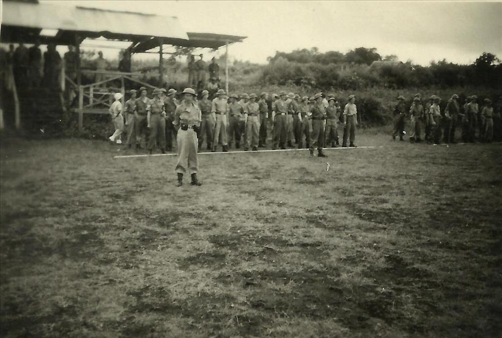 Nederlands Indië; peloton, parade, gebouw, militaire...
