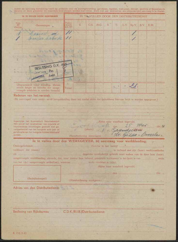 Brief in enveloppe. 18 juli 1943. Aan den heer G.C. ...