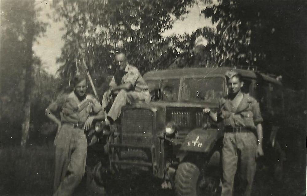 Nederlands Indië; legervoertuig, wapen EM, militairen