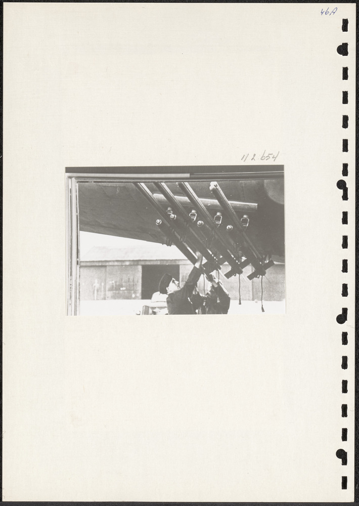 Foto grondpersoneel brengt raketten aan onder de vle...