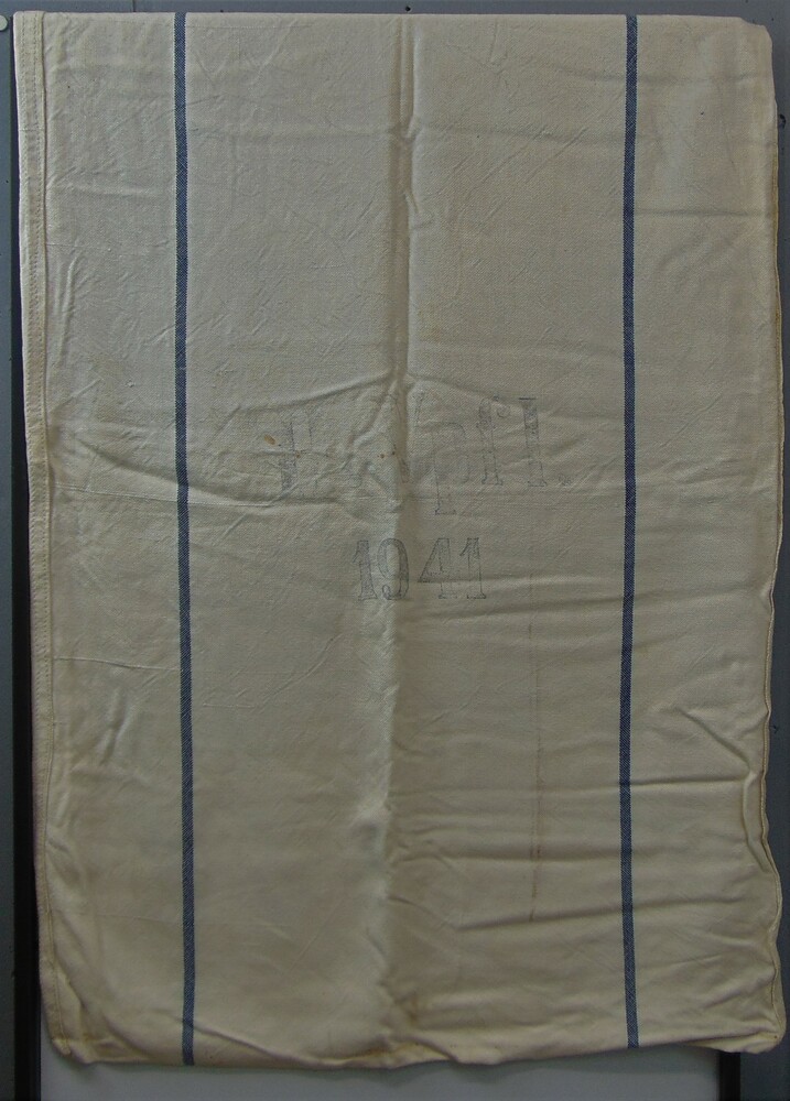 Postzak, licht van kleur met een grijze streep.