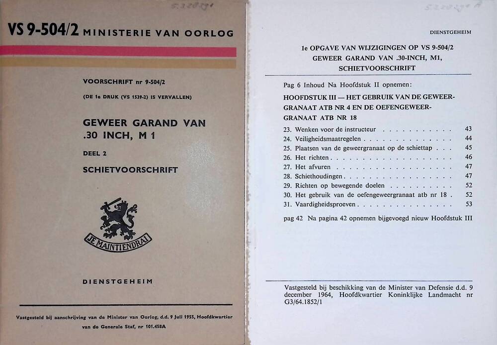 Voorschrift nr 9-504/2 - geweer Garand van .30 inch,...