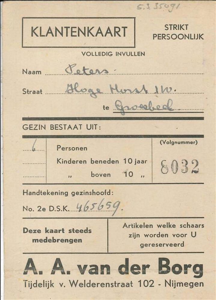Klantenkaart, A.A. van der Borg te Nijmegen voor A. ...