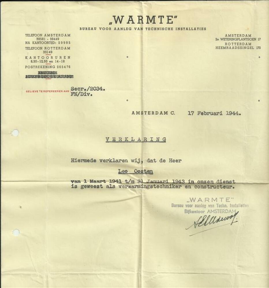 Warmte , bureau voor technische installaties aan dhr...