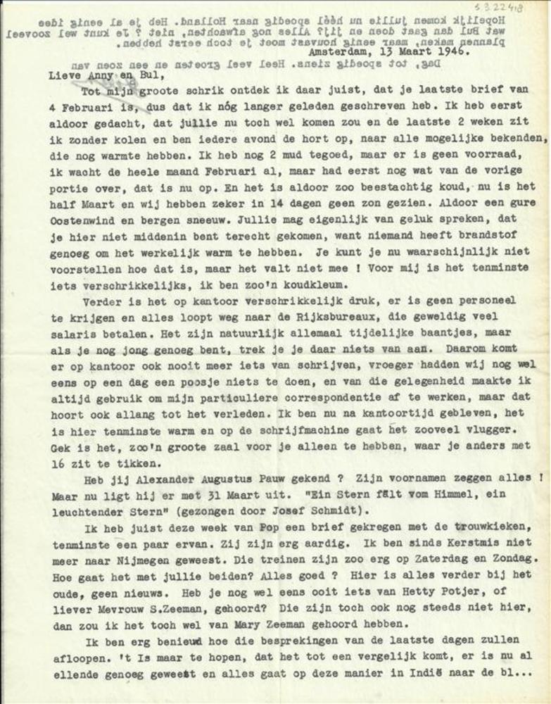 Brief Stien geschreven 13 maart 1946, aan Annie en B...
