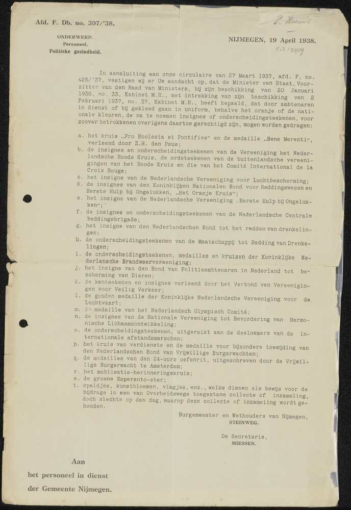 Wehrmachtkommandanteur Nijmegen bericht om zich te m...