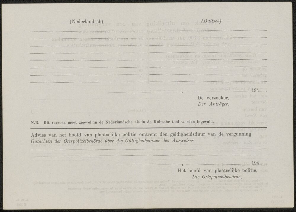 Verzoek om uitreiking van een vergunning/Antrag auf ...