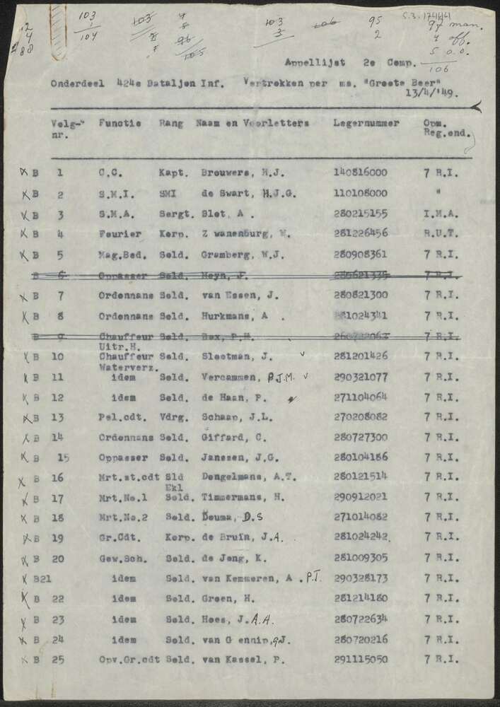 Appellijst 2e Comp. 424e Bataljon Inf.