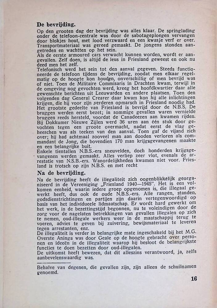 P. Wybenga, Kort overzicht van het verzet in Friesland