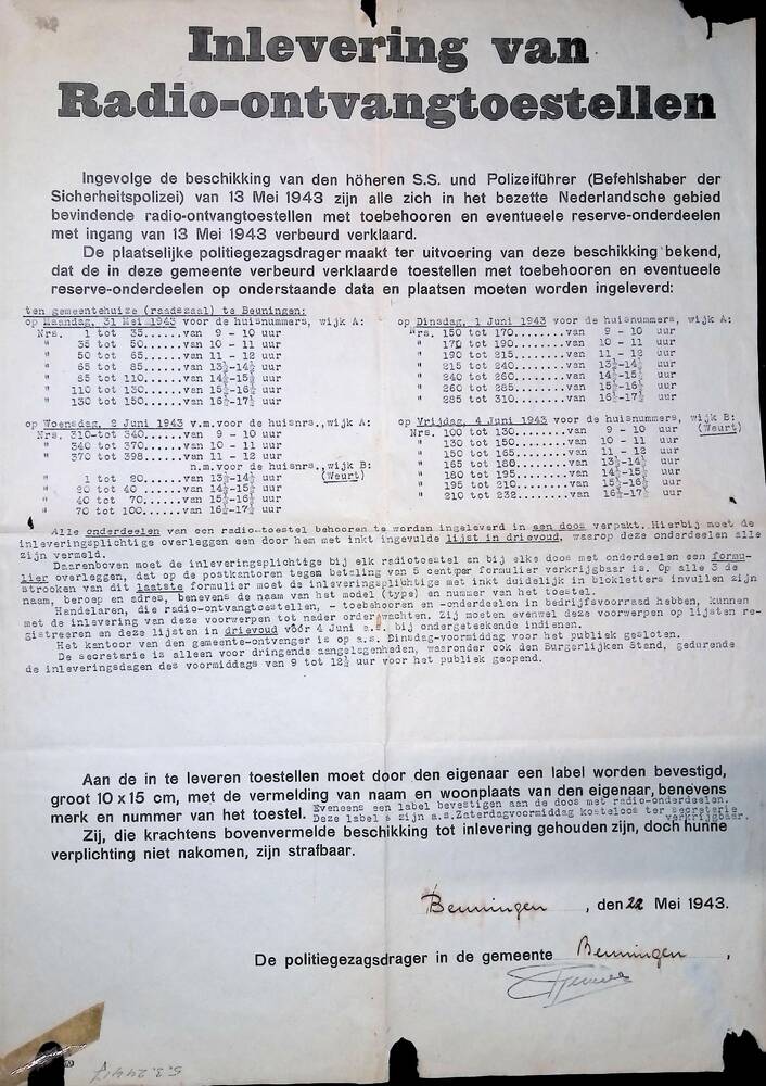Inlevering van radio-ontvangtoestellen