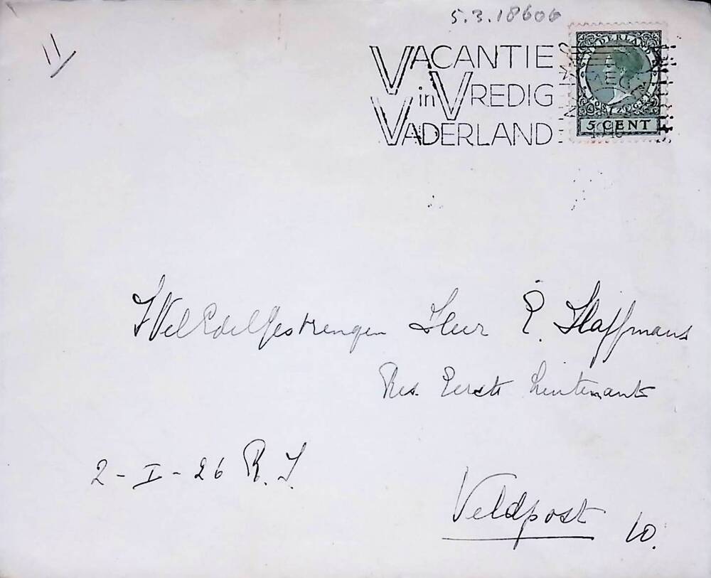 Enveloppe geadresseerd aan E. Haffmans, 2-I-26 R.I.