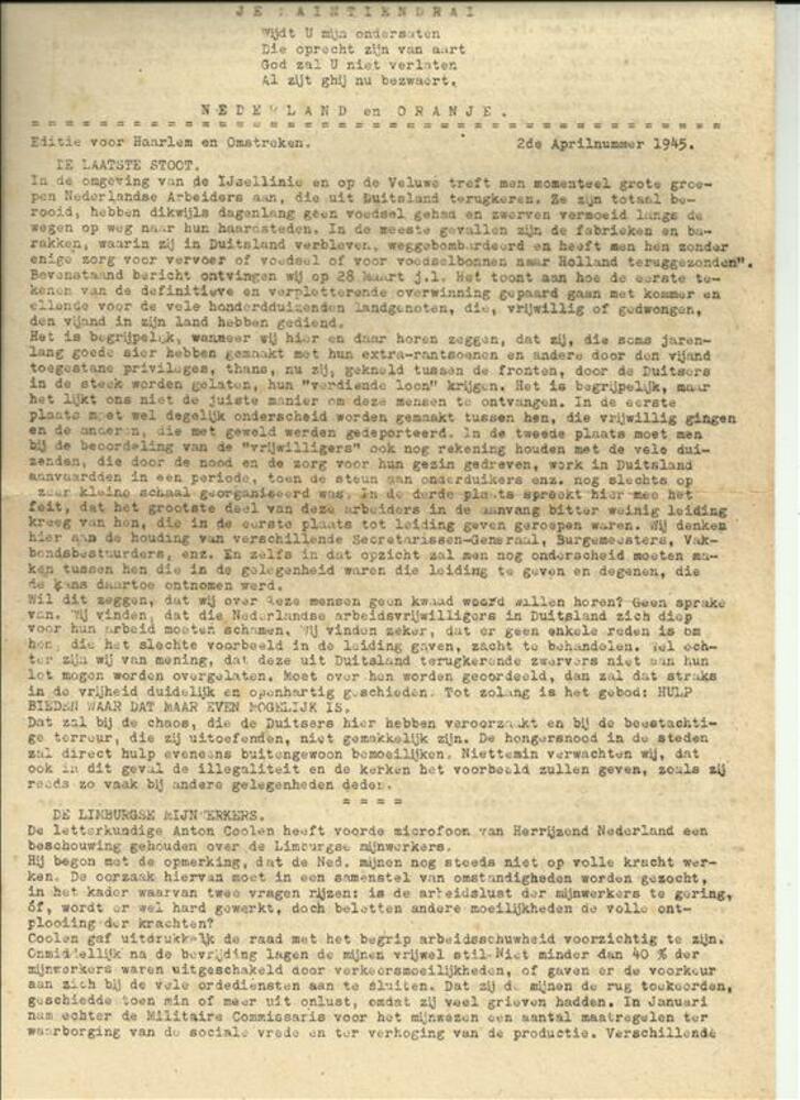 Je Maintiendrai, 2de Aprilnummer 1945, editie voor H...
