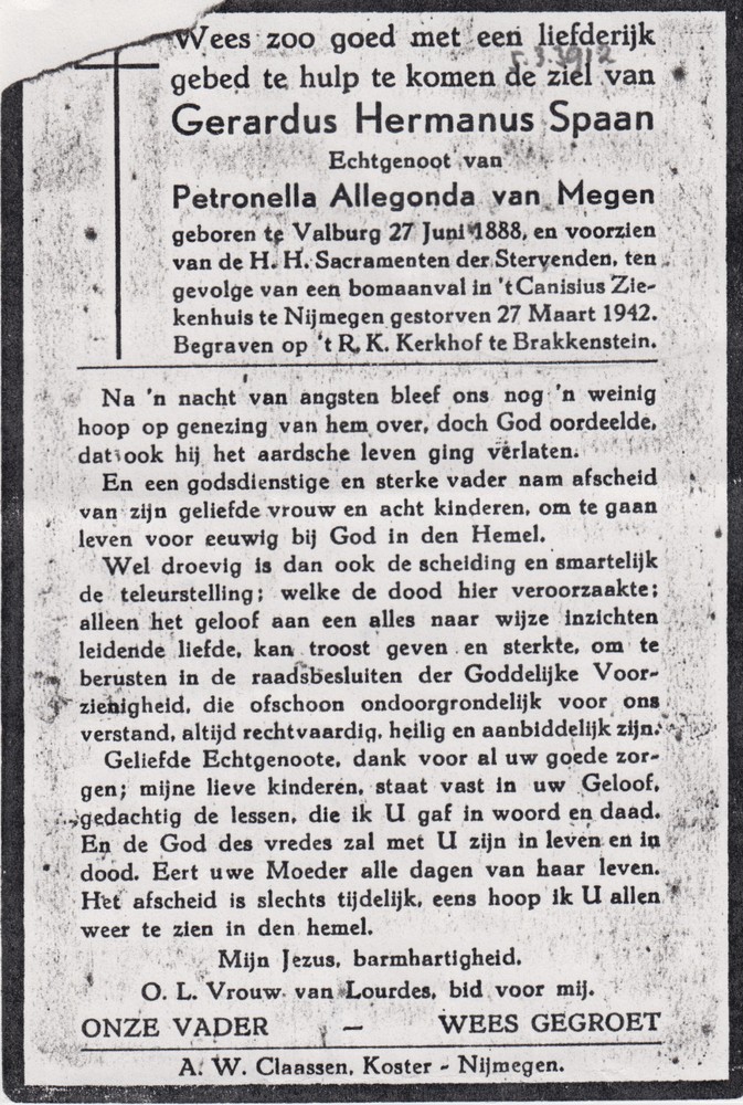 bidprentje Gerardus Hermanus Spaan