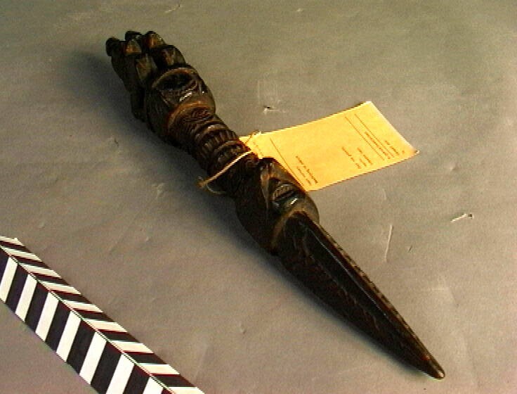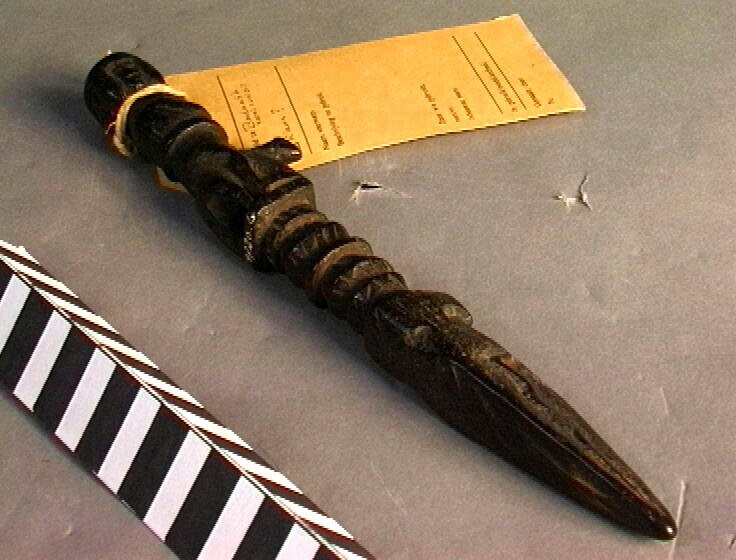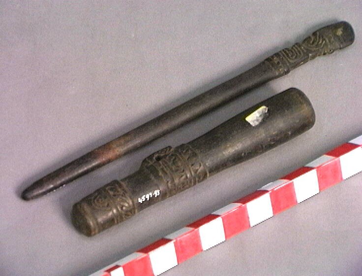 Een houten zitbankje gebruikt bij het kloppen van bo...