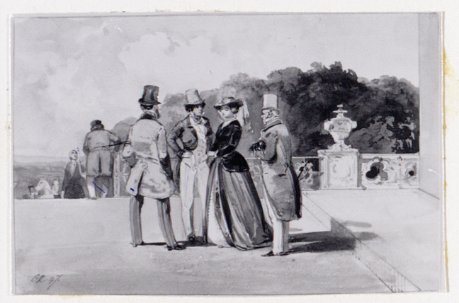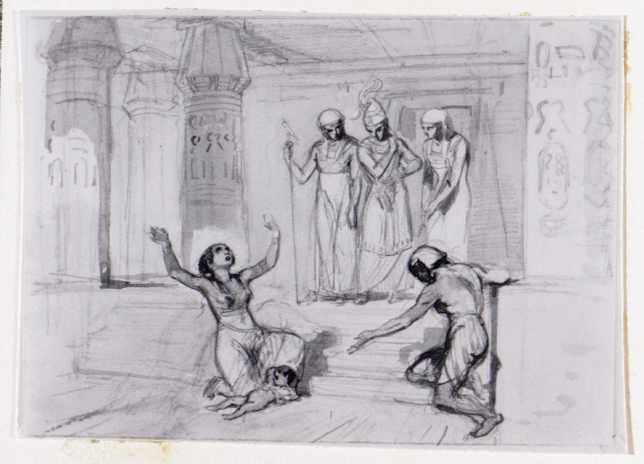 Bij een tempel van Pan, herders en herderinnen, een ...