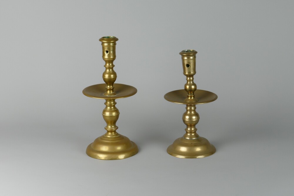 schijf- of kraagkandelaar van messing uit de 17e of ...