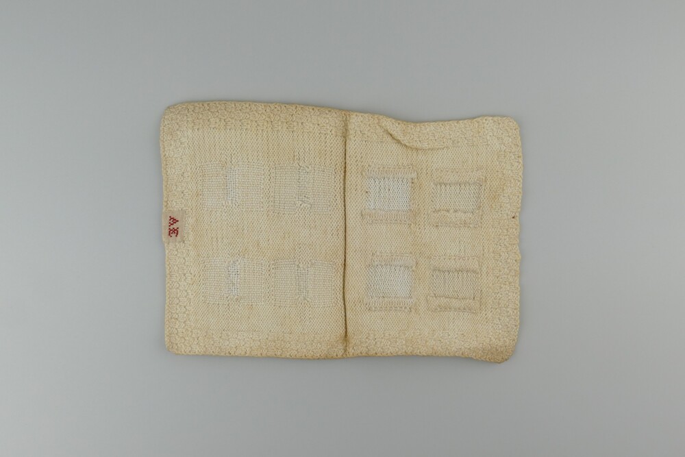 proeflap van katoen, gemerkt A E, circa 1920
