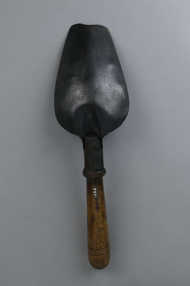 Kolenschep van ijzer met houten steel.