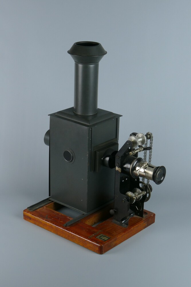 toverlantaarn van metaal op houten onderplaat, met s...