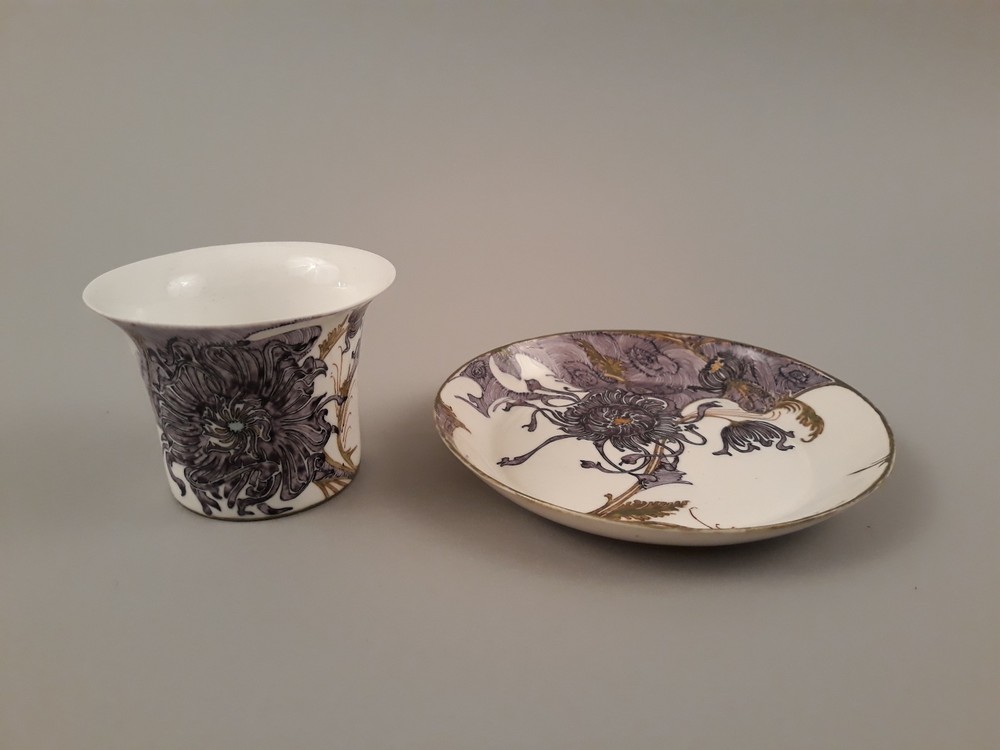 Kop en schotel van eierschaalporselein