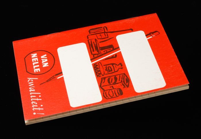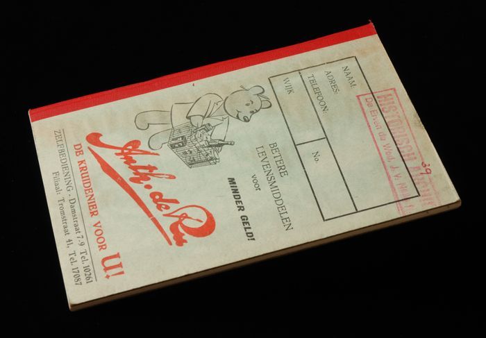 Rood winkelboek met reclame Van Nelle en naam van kl...