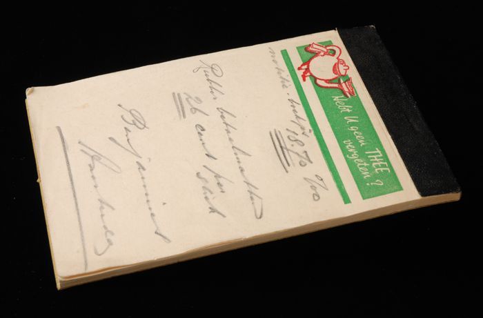 Notitieboek van Van Nelle "Hebt U geen THEE vergeten?"