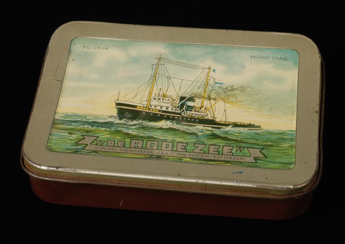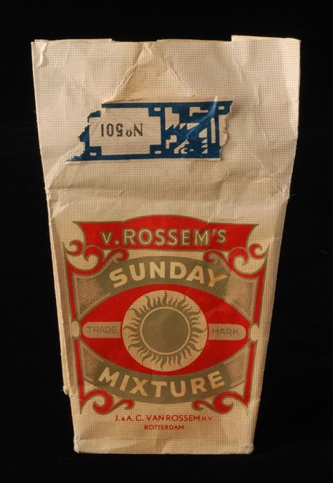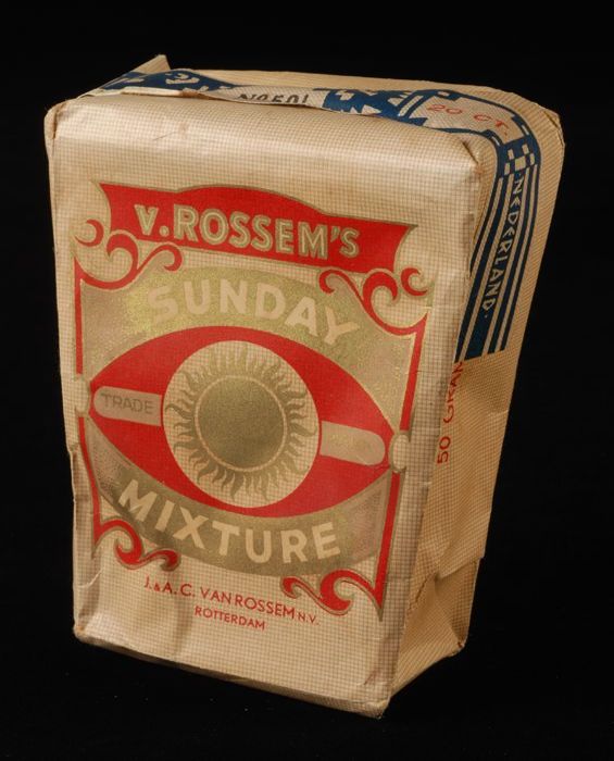 Blauw met rood pakje tabak van Van Rossem, productna...