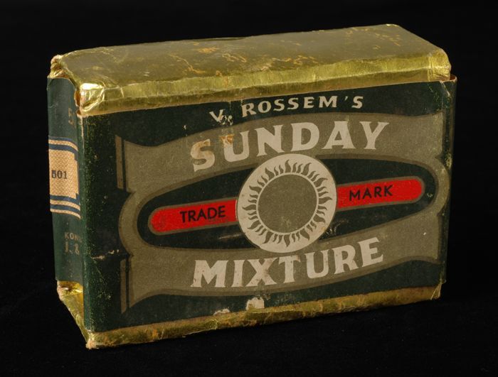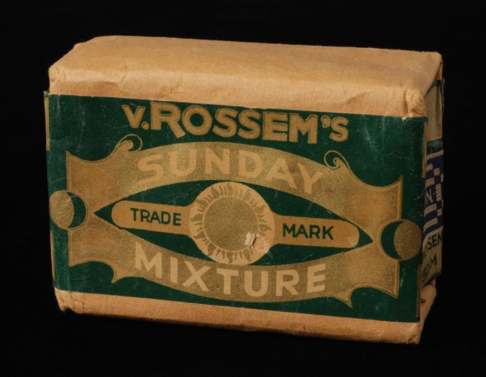Donkerblauw pakje tabak van Van Rossem, productnaam ...