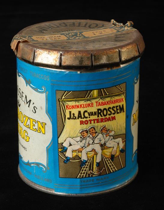 Blauw pakje tabak van Van Rossem, productnaam Matroz...