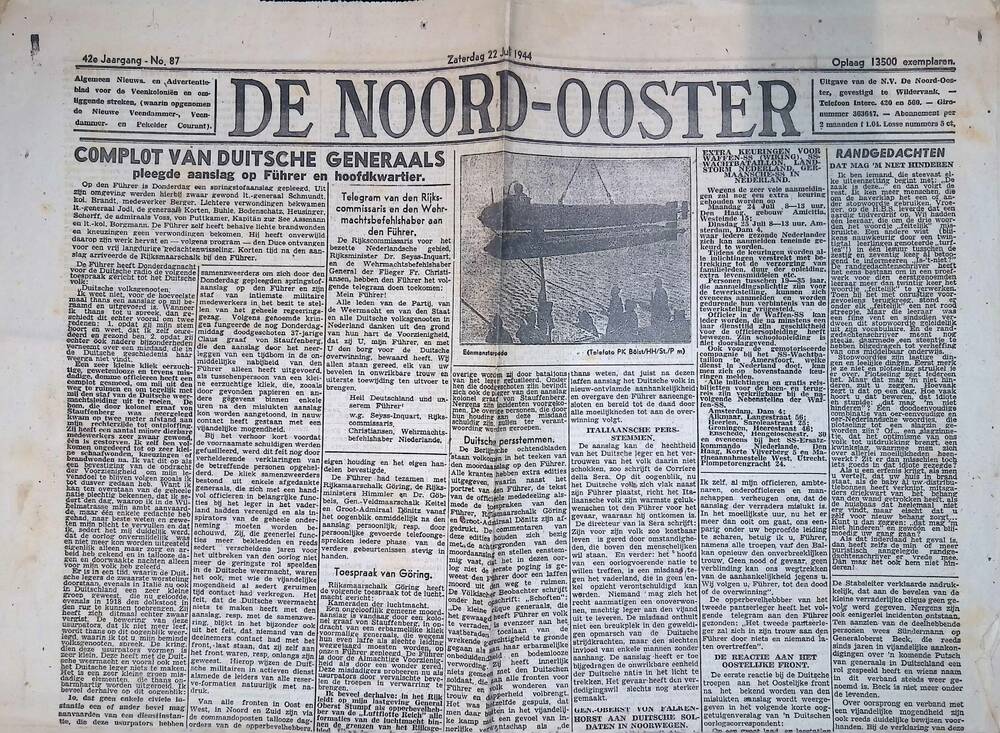 Nieuwsbulletin uitgegeven door Vrij Nederland op den...