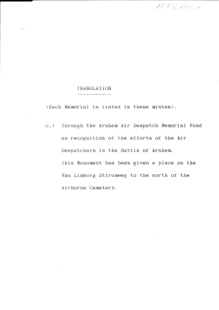van de gemeente Renkum aan The Arnhem Despatch Memor...