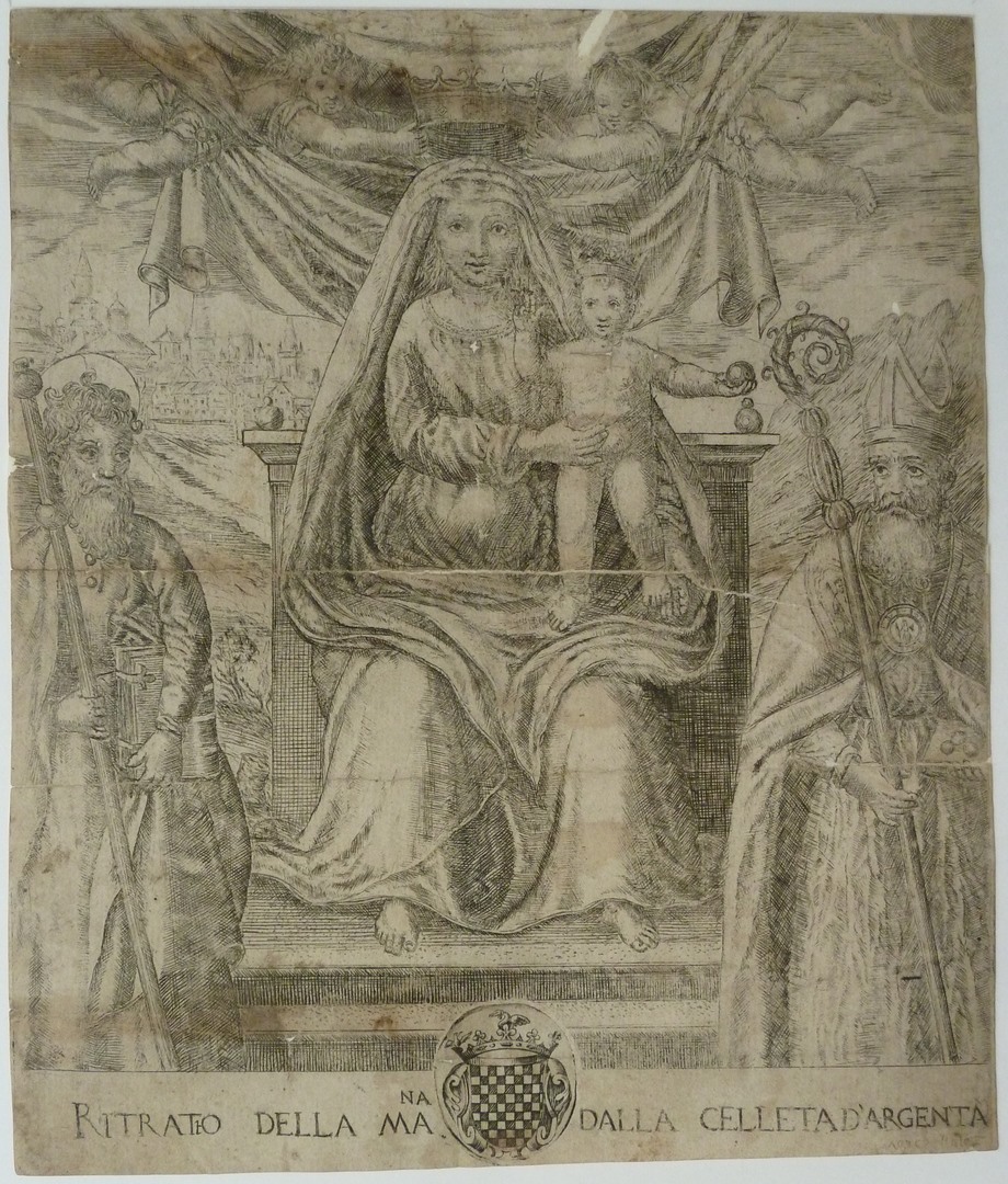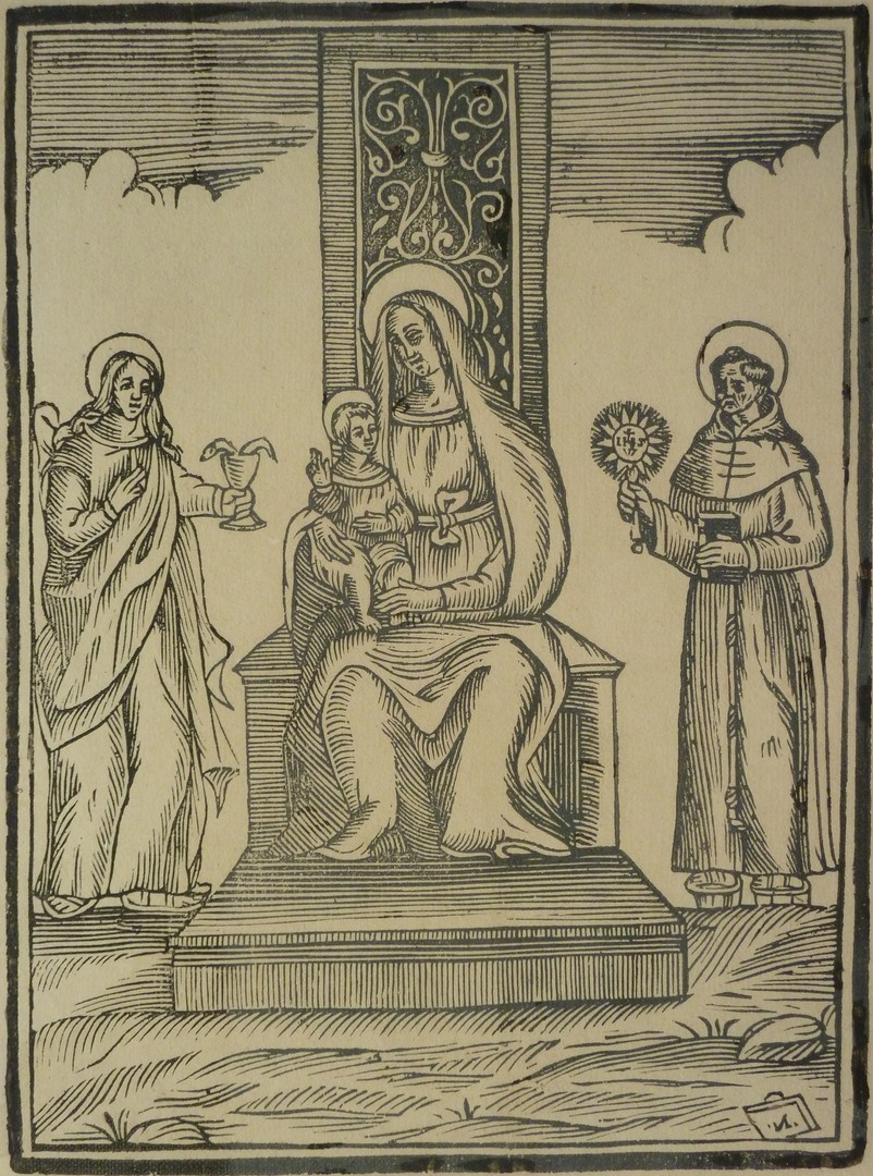Maria met kind, Bernardinus van Siena en Johannes de...