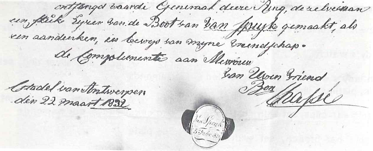 Briefje gezegeld met rode lak met wapen van Chassé